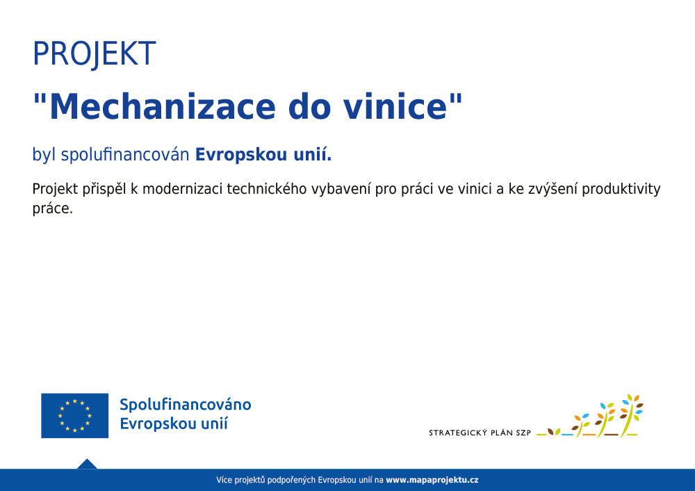 Obhospodařujeme 20 ha vinic s klasickými odrůdami vhodnými pro naše podmínky. Vinice jsou situovány na výborných prosluněných polohách, které umožňují hroznům dokonale vyzrát. Do budoucna bychom chtěli staré vinice obnovovat a zaměřit se na výsadbu rezistentních a odolných odrůd.